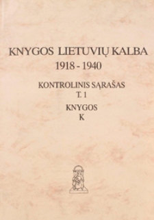 | Daugaravičienė, Alma [oprac.], 1998, Knygos lietuvių kalba 1918-1940. Kontrolinis sąrašas. T.1. Knygos K | Mar 29, 2012 |