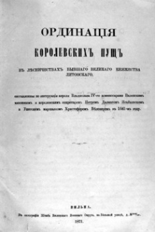 Title: Ordinaciâ korolevskih puŝ v lĕsničestvah byvŝago Velikago Knâžestva Litovskago [...]. ; Ординация королевских пущ в лесничествах бывшего Великого княжества Литовского, составленная по инструкции короля Владислава IV-го [... ] в 1641-м году
