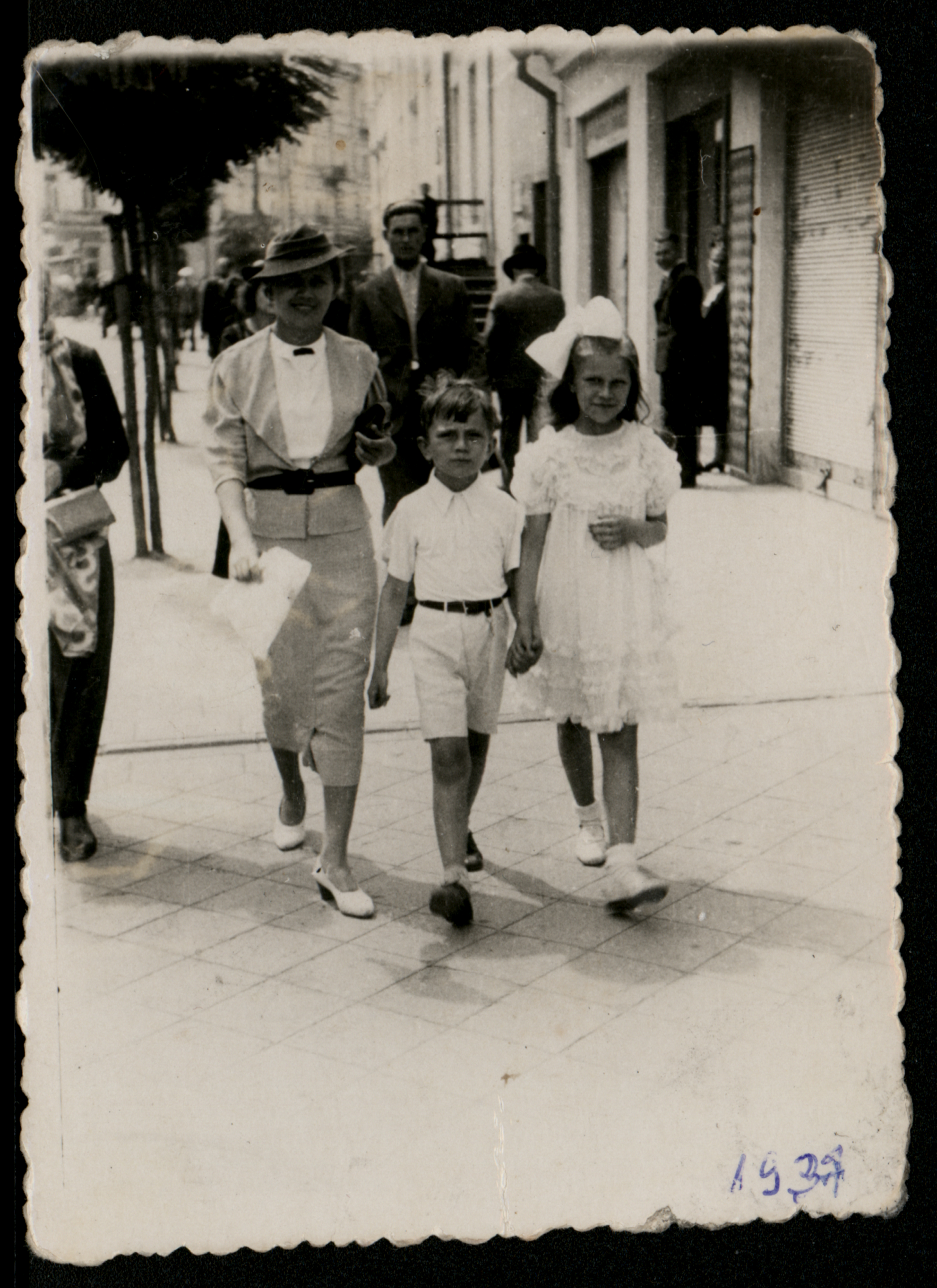 Krystyna Zawadzka z bratem Romanem i mamą Heleną, Białystok, 1937 r.