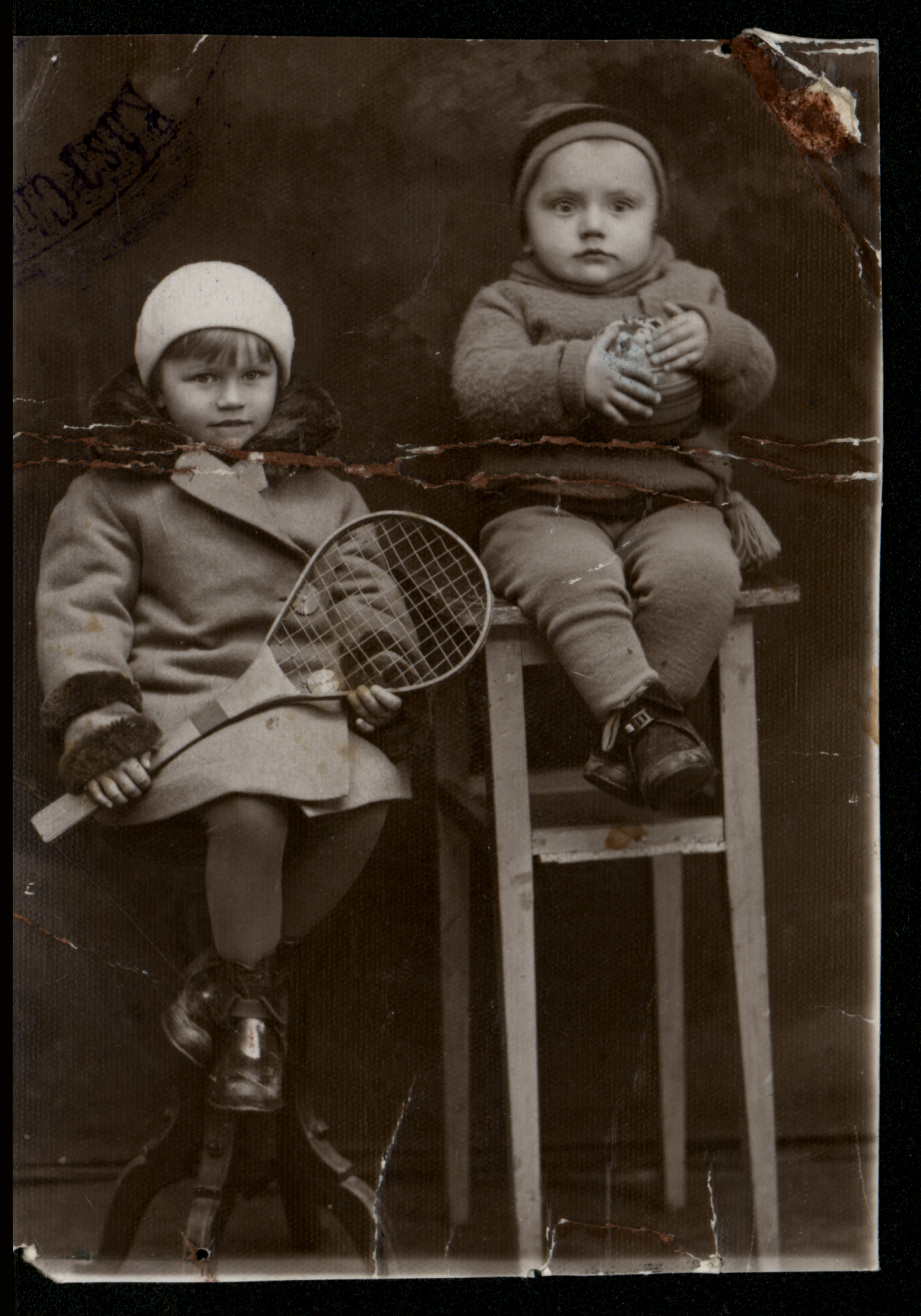 Kystyna Zawadzka z bratem Romanem Skrzędziejewskim w atelier fotograficznym, 1931 r.