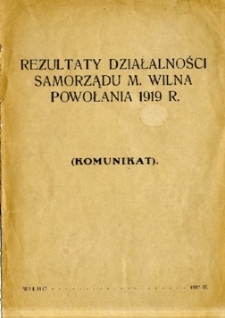 Title: Rezultaty działalności Samorządu m. Wilna powołania 1919 r. : (Komunikat)