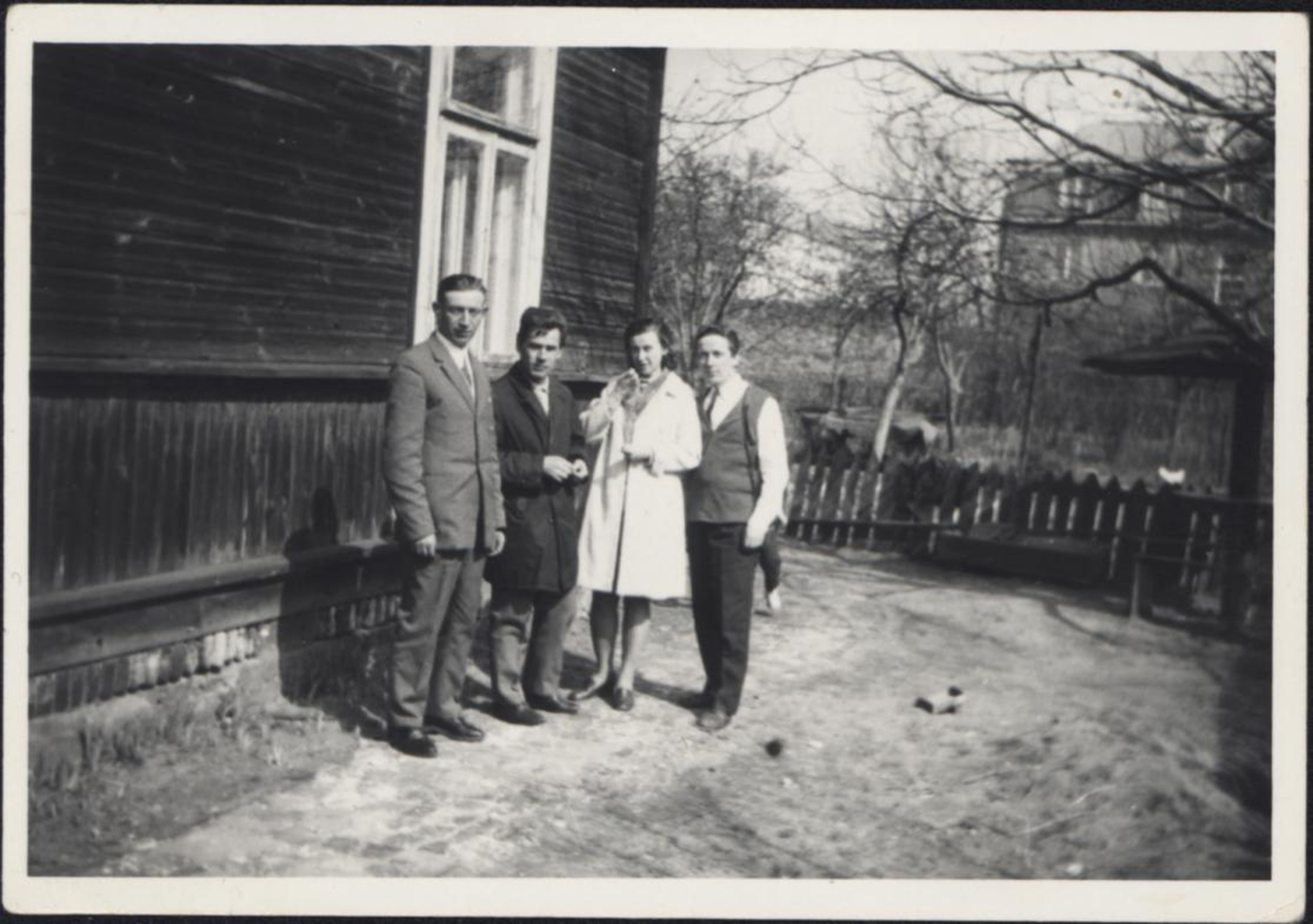 Date: Uwagi:Udostępniono w ramach projektu "e-Mediateka CLZ" ; Od lewej: Ireneusz Makowski (brat), Józef Makowski (cioteczny brat), Julitta Kazimierczyk (z domu Makowska), Kazimierz Kazimierczyk (mąż)