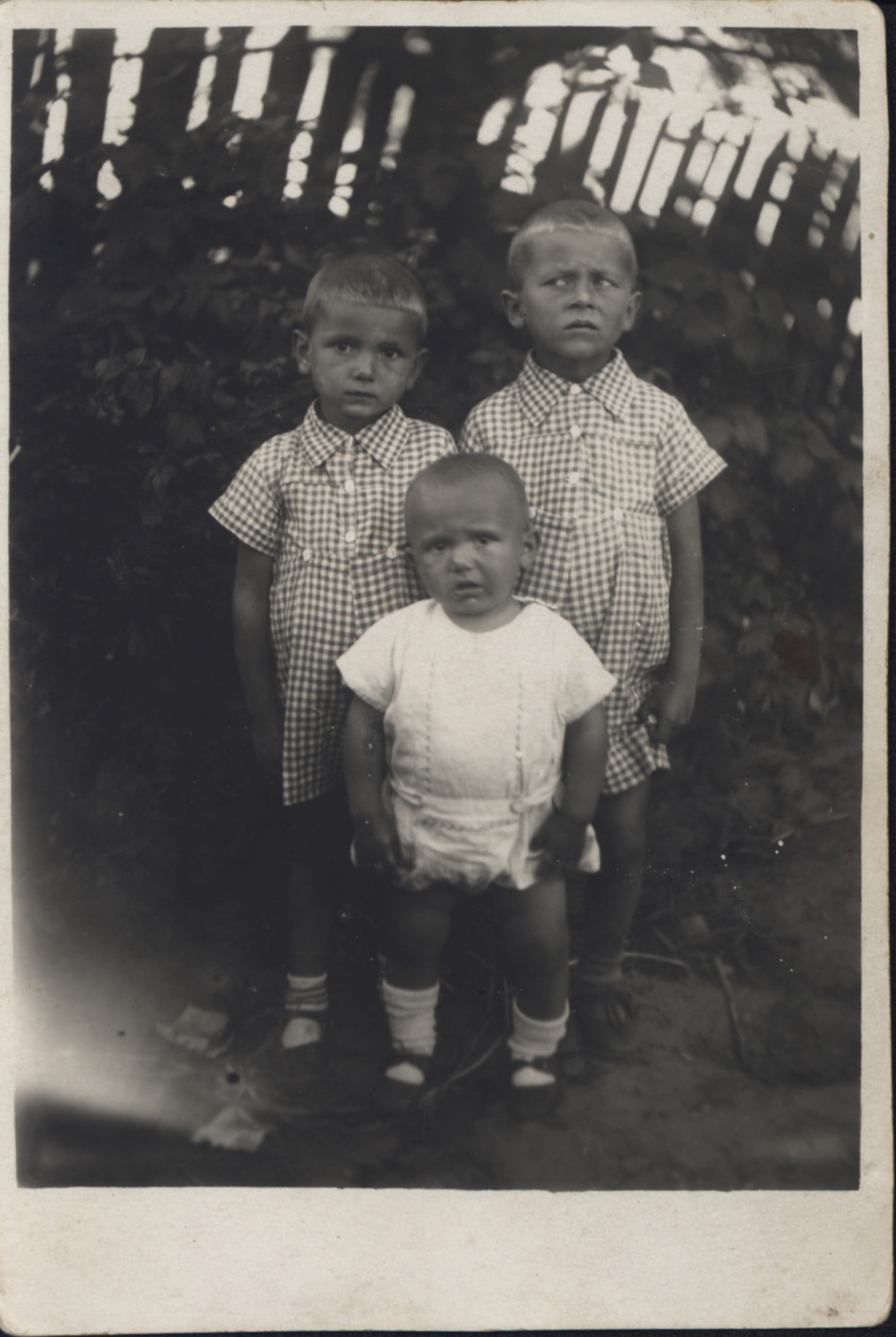 Janusz Mozolewski (dolny rząd) z braćmi, ul. Piasta 146/3, Białystok, 24 sierpnia 1942 r.