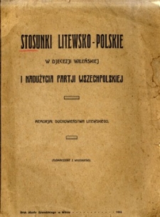 | Stosunki litewsko-polskie w Djecezji Wileńskiej i nadużycia Partji Wszechpolskiej : memorjał duchowieństwa litewskiego | May 8, 2023 |