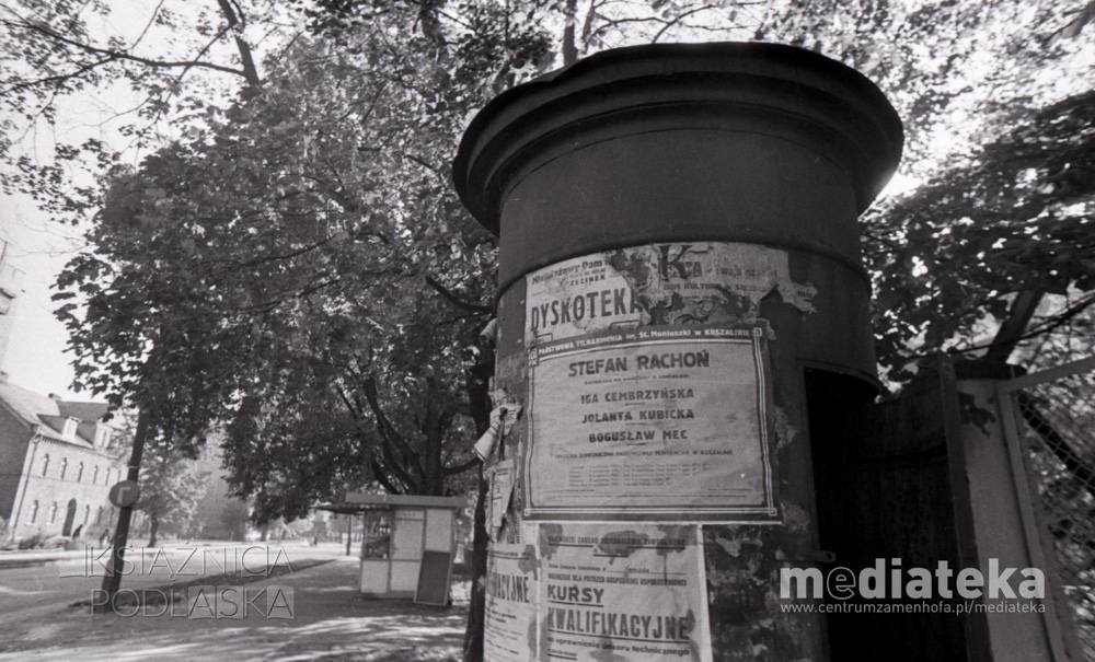Słup ogłoszeniowy, druga połowa lat 70. XX w., fot. ze zbiorów Andrzeja Trzcińskiego
