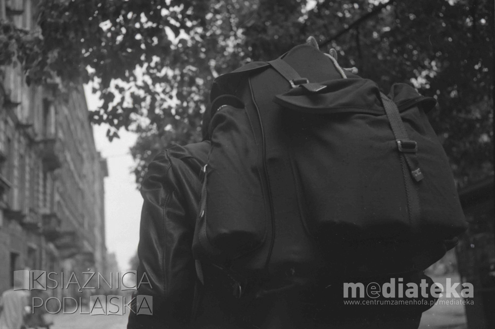 Mężczyzna z plecakiem, druga połowa lat 70. XX w., fot. ze zbiorów Andrzej Trzcińskiego