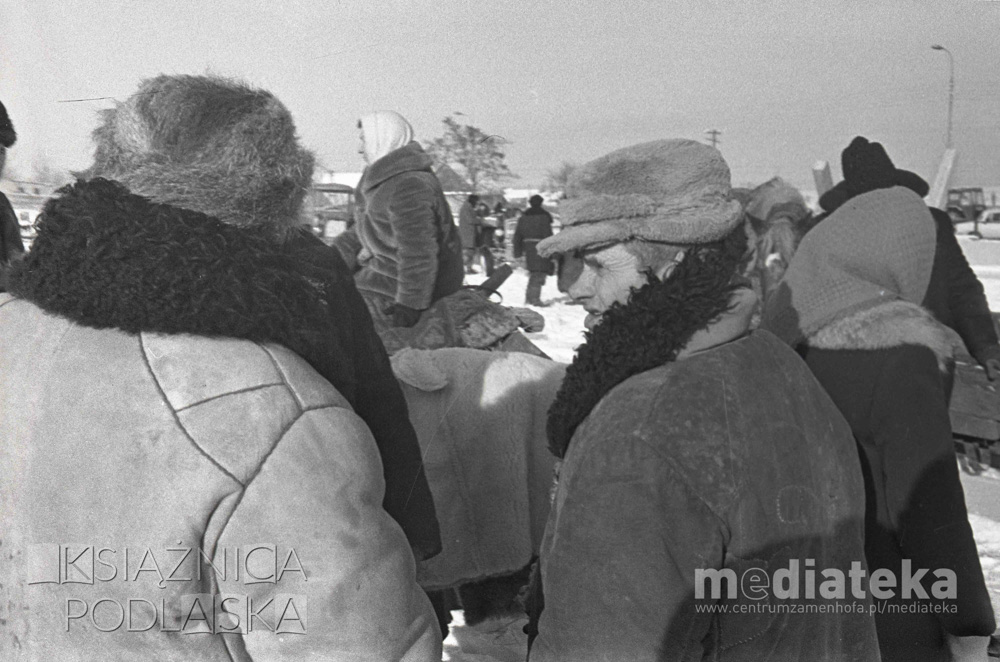 Ludzie na targu zimowym, druga połowa lat 70. XX w., fot. ze zbiorów Andrzej Trzcińskiego