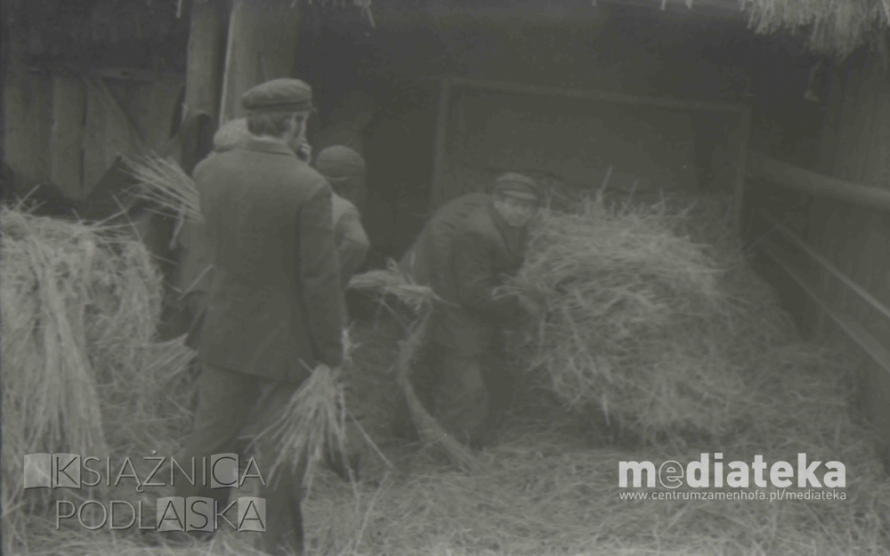 Młócenie słomy, druga połowa lat 70. XX w., fot. ze zbiorów Andrzeja Trzcińskiego