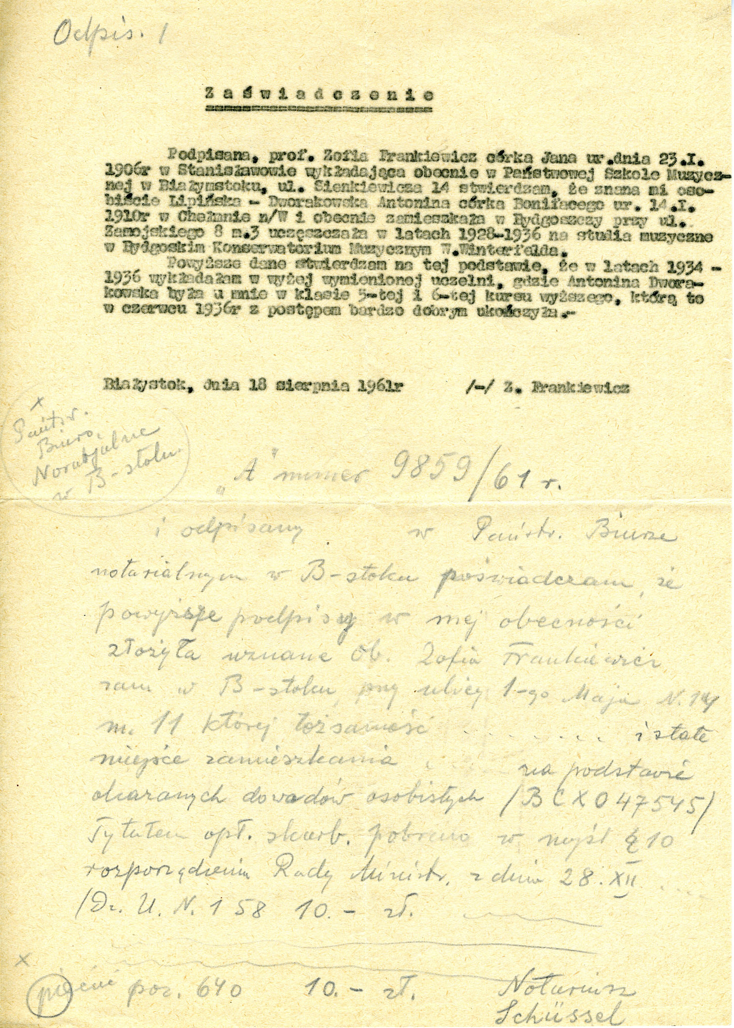 Zaświadczenie o ukończeniu przez Antonię Dworakowską Bydgoskiego Seminarium Nauczcielskiego