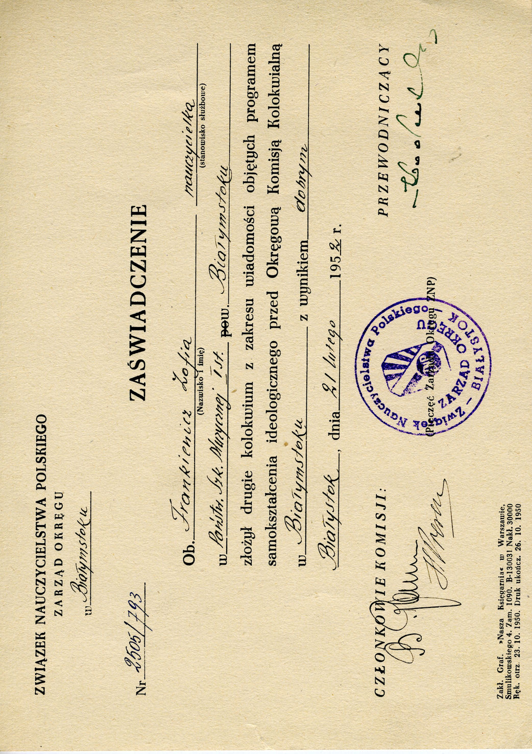 Date: Uwagi: Subject and Keywords:Frankiewicz, Zofia (1906-1999)