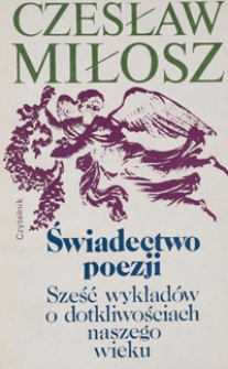 | Miłosz, Czesław, 1987, Świadectwo poezji. Sześć wykładów o dotkliwościach naszego wieku | Nov 15, 2012 |