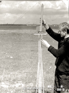 | Portret Romana Gołubowskiego trzymającego model rakiety, Lotnisko Krywlany, Białystok, lata 50., 60. XX w. | 21 lis 2019 |