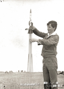 | Portret Jerzego Łapińskiego trzymającego model rakiety, Lotnisko Krywlany, Białystok, lata 50., 60. XX w. | Nov 21, 2019 |